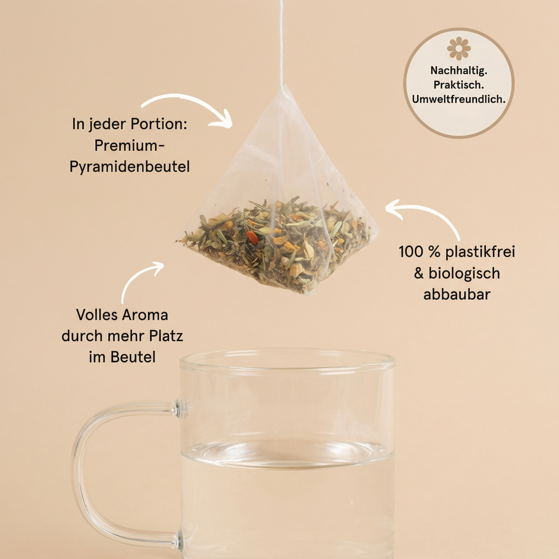Einfach Wasser aufkochen, in deine Lieblingstasse gießen, den Teebeutel hinzufügen und 4–6 Minuten ziehen lassen. Alternativ kannst du den Tee auch eisgekühlt genießen – alle Vorteile bleiben dabei erhalten.
